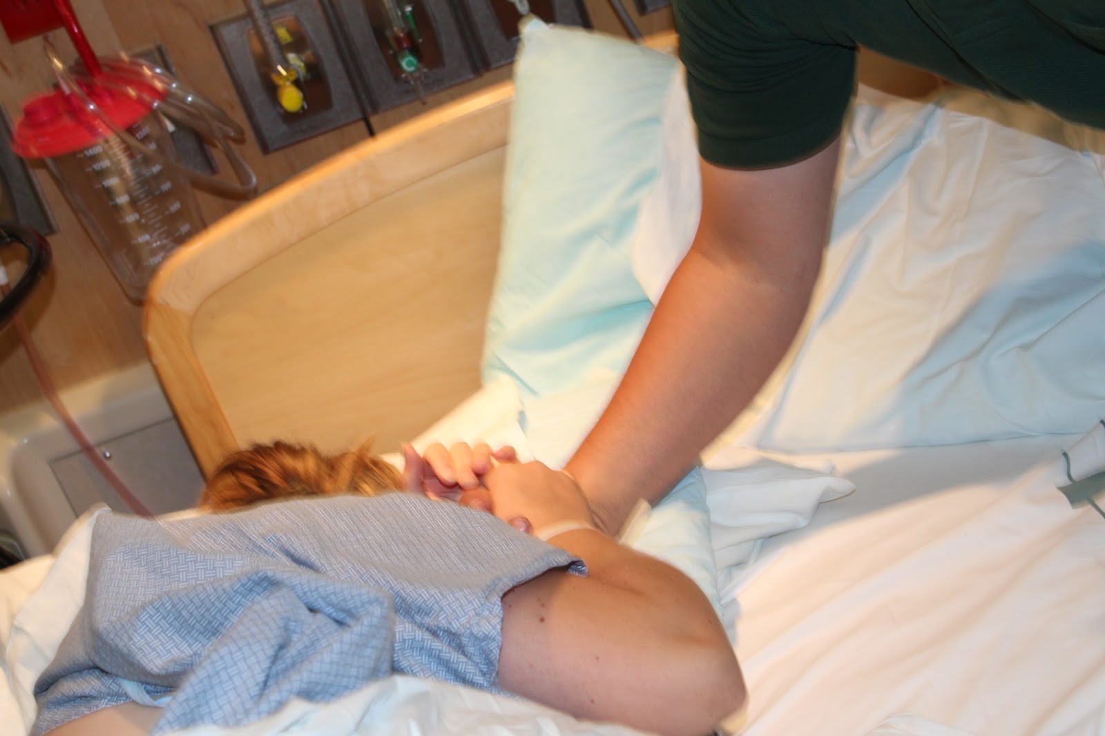 saying bye to her Dad while she goes to wait in the waiting room as I get ready to push